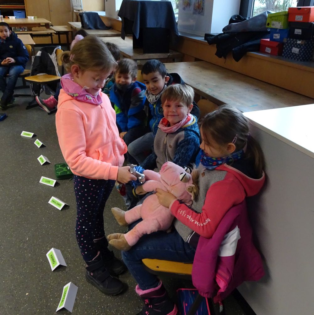 Im Nu sind die 2 Stunden vorbei. Die Kinder sind hellauf begeistert und wir alle haben eindrucksvoll von Nina, Heidrun und dem Schweinchen Sissi erklärt bekommen , welchen Sinn die AHA+L Regeln haben.
